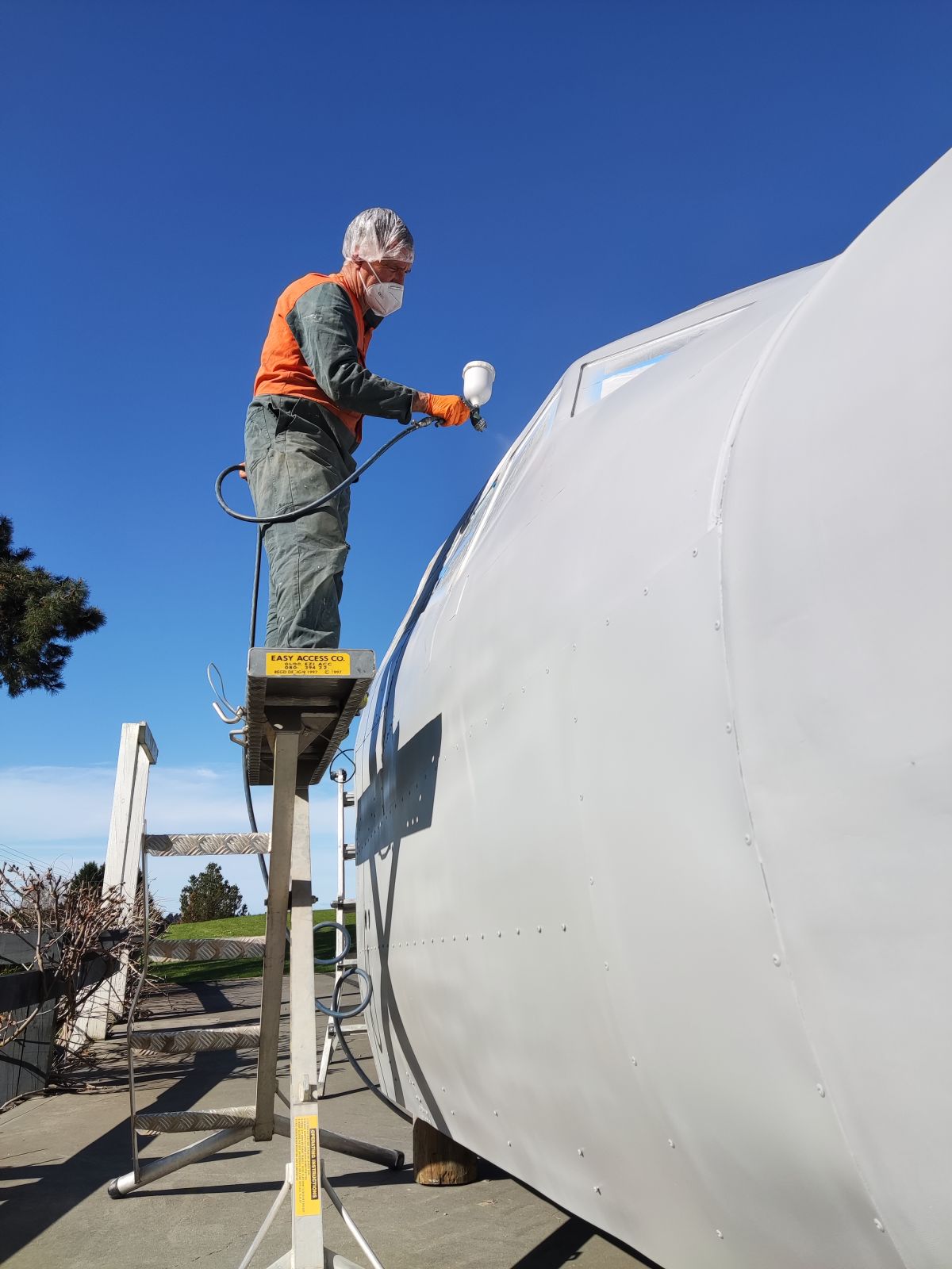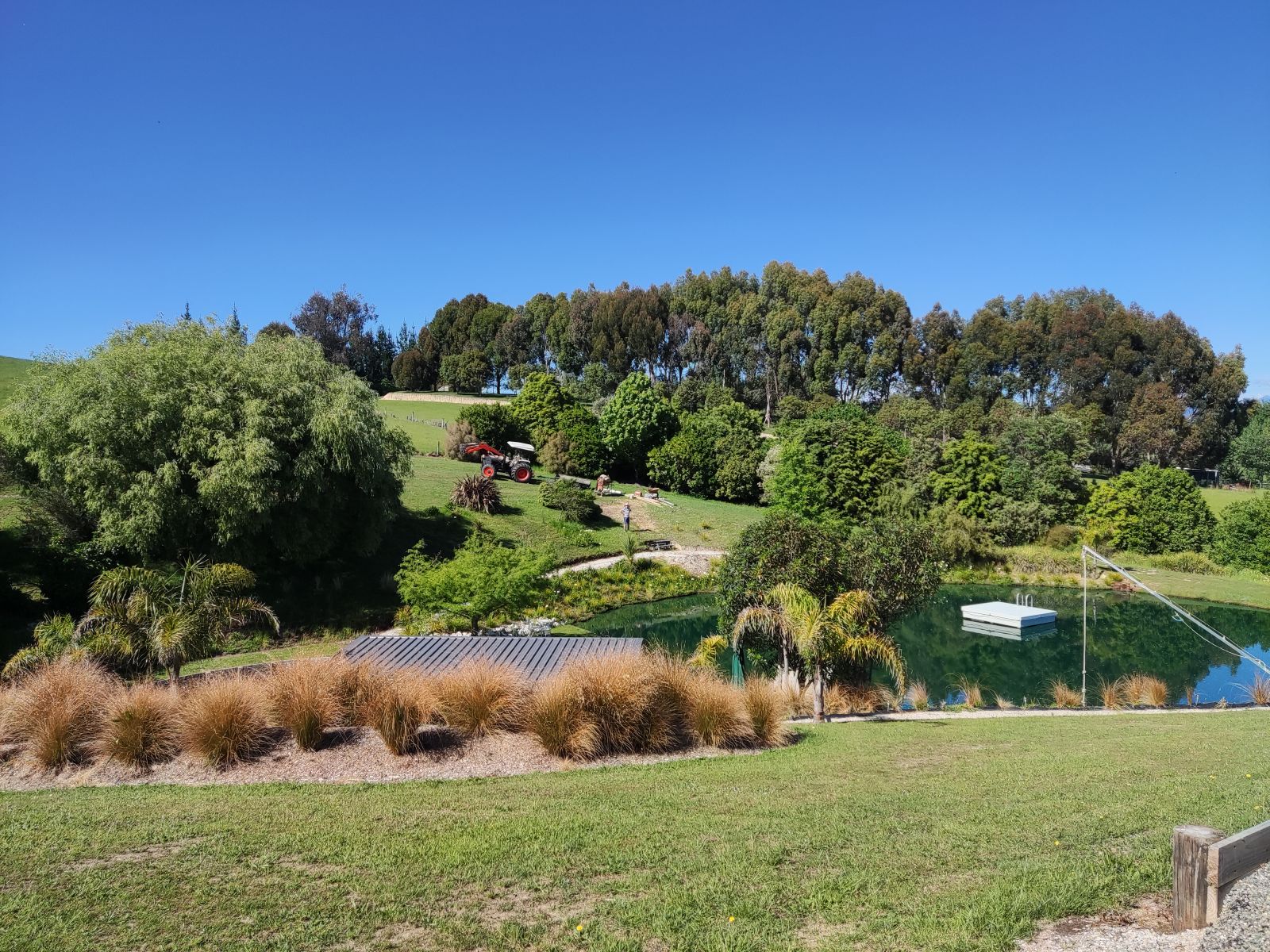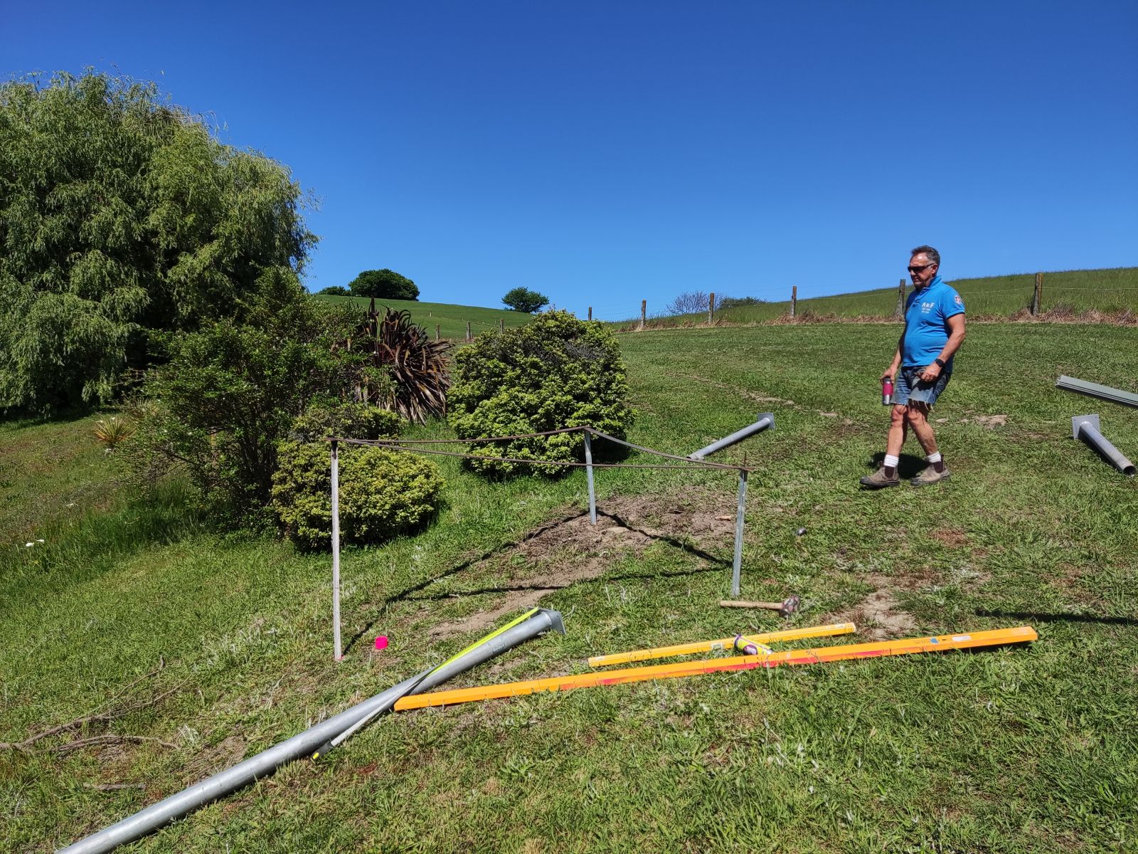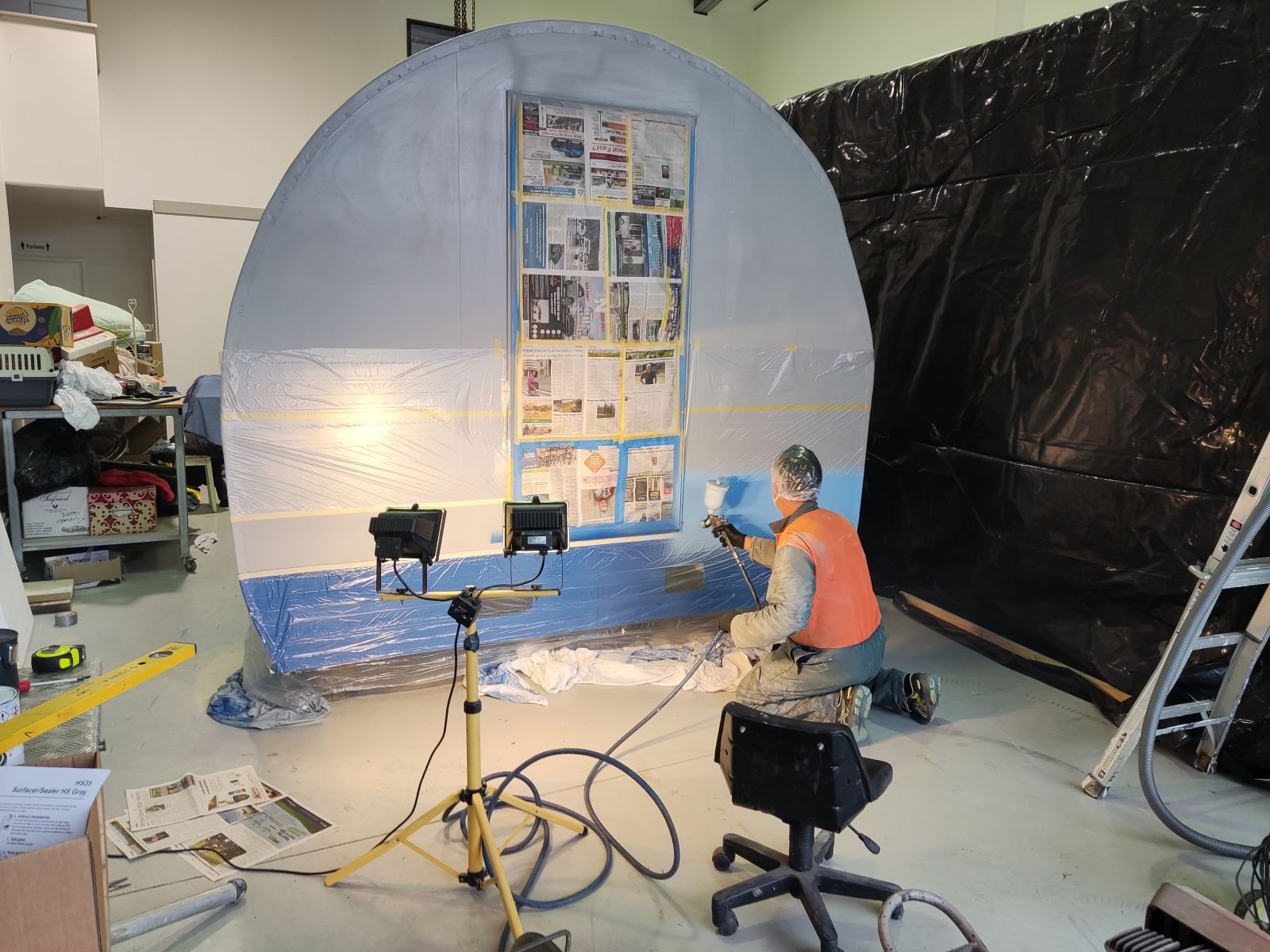 Unser Vermieter hat das Cockpit ohne Nase einer ausrangierten Boeing 737-300 irgendwo aufgetrieben. Der Transport allein auf dem Anhänger zu sich nach Hause muss wohl schon interessant gewesen sein, da ein Flugzeug auf der Strasse nichts alltägliches ist. Angefangen hat Ross dann mit dem Entfernen aller Leitungen. Dann musste der Rahmen hinten nachgebildet werden. Das erfolgte mit kurzen Metallstücken die er zusammengeschweisst hatte, damit es wieder stabilisierend den Bogen ergibt. Für die Nase wurden Styroporplatten zusammengeklebt und dann mit einem Gitter als Muster zu der Form abgeschliffen. Das muss wohl eine Riesensauerei gewesen sein. Ab diesem Zeitpunkt sind wir dann aus Deutschland angekommen. Die Nase wurde dann mit Glasfasermatten verstärkt, grundiert und an den vorderen Teil des Cockpits befestigt. Im nächsten Schritt wurden Muster für die Fenster aus Karton ausgeschnitten und das Plexiglas entsprechend zugeschnitten. Die Fenster wurden eingeklebt und mit Silikon abgedichtet. Mussten teilweise noch erwärmt werden, da sie nicht plan eingebaut werden konnten. Die seitlichen unteren Bleche wurden zugeschnitten und alles vernietet. Die Wand hinten wurde aus Holzplatten gemacht, aus 2 Teilen bei denen der Türausschnitt schon eingerechnet ist. Abdichtung hinten dann mit Abkantblechen und verklebt. Dann die Tür eingebaut. Um Frischluft reinzubekommen wurden kleine Gitter seitlich eingebaut. Dann noch weiche Schaumstoffmatten eingelegt, bevor dann der Teppich drüber gekommen ist. Nachdem dann das komplette Flugzeug abgeschliffen wurde kam die große Herausforderung es irgendwie aus der Garage zu befördern um es dann zu grundieren und lackieren. Mit verlängerten Gabeln und Ross‘ Traktor konnte das Cockpit angehoben werden und ganz langsam rückwärts aus der Garage gefahren werden. Nun konnte das Cockpit lackiert werden in den Originalfarben. Das ganze Cockpit wieder zurück in die Garage und auf die 3 provisorisch verschraubten Pfosten gesetzt. Cockpit war nun fertig und bereit für seinen ersten und letzten Flug zu seinem Zielflughafen: auf die Wiese am See mit direktem Blick darauf. Die Frage stellte sich wie wir es schaffen die 3 Metallpfosten genau an die Stelle unten an dem Hang einzubetonieren wo letztendlich sein sollte. Ross hatte ein Dreieck zusammengeschweißt aus Metallschienen und an jeder Ecke ein Loch gebohrt. Zur weiteren Vorbereitung wurden Metallplatten auf die Metallpfosten geschweißt mit jeweils 3 Bolzen auf der Mitte. Zinkspray gegen Rost um nun mit dem Muster genau die Stelle zu markieren für die Löcher am Boden wo das Cockpit genau sein sollte. An der Stelle war ein Busch. Den haben wir dann mit dem Traktor und einer Kette einfach rausgerissen aus dem Boden. Wir haben das Metallmuster auf der hinteren Seite aufgelegt und die vordere Seite soweit angehoben dass sie im Wasser lag. Die Spitze vorne nach unten gelotet und mit Markierungsspray den Lochmittelpunkt am Boden markiert. Abends kam dann noch Ross‘ Nachbar Mark mit seinem kleinen Bagger und dem Schneckenbohrer worauf wir die 3 Löcher in den Boden graben konnten. Die hinteren 2 Löcher waren nur ein Meter tief das vordere Loch ein 1,70m. Dann noch den Dreck weggeschaufelt und weiter ging es am nächsten Tag mit dem Positionieren und Befestigen der 3 Pfosten als Vorbereitung für das Einbetonieren. Wir hatten dazu Kieselsteine geholt um ein wenig die Pfosten wieder höher zu setzen und einen besseren Untergrund zu bekommen. Dann die 3 Pfosten eingesetzt mit Klammern an Holz Verstrebungen befestigt und entsprechend austariert und ins Wasser gesetzt. Dann ging es weiter die Löcher mit Beton zu füllen. Wir haben zirka 40 Schubkarren Beton mit einem kleinen Mischer benötigt um die 3 Löcher zu füllen. Am nächsten Tag, also 24 Stunden später, ging es dann los das Cockpit auf seine Reise zu schicken zu seinem finalen Standort Wir hatten uns den Abend zuvor sämtliche Gedanken gemacht wie dies am besten erfolgen könnte da das Gelände doch sehr abschüssig und steil ist und die langen Gabeln vom Traktor sich leicht nach links und rechts verschieben lassen. Wir haben dazu unter dem Cockpit, nachdem wir die Gabeln langsam eingefahren hatten, links und rechts von der Gabel lange Holzlatten angeschraubt wie eine Spur beim Ski Weitsprung. Dann ging es los rückwärts aus der Garage, um das Wohnhaus herum, mit 0,8 km/h ganz langsam den Hang hinunter. Per Headset konnten Ross und ich kommunizieren um entsprechend die Gabel nach oben oder in einen anderen Winkel zu bekommen als Ausgleich für den Hang. Wir kamen dem Ziel immer näher, unser Herz raste, und als wir final vor den Pfosten standen ging es nun darum die 3 Metallplatten der Pfosten genau zu treffen. Dies hat ein Weilchen gedauert, weil es mit dem Traktor nur vorwärts und rückwärts ging und man die Gabeln nicht links und rechts verschieben konnte. Zumal war das Gelände dort auch abschüssig wir haben es dann geschafft die 3 Pfosten zu treffen. Yeeees – geschafft! Mit einem Spanngurt konnten wir die vordere Auflagefläche des Cockpits noch besser mittig auf den Pfosten platzieren, final noch mit Schrauben und Muttern befestigt – fertig. Das Cockpit stand an seiner Stelle wir waren happy und haben unsere großen Tag mit einem tollen Barbecue und Bier beendet.